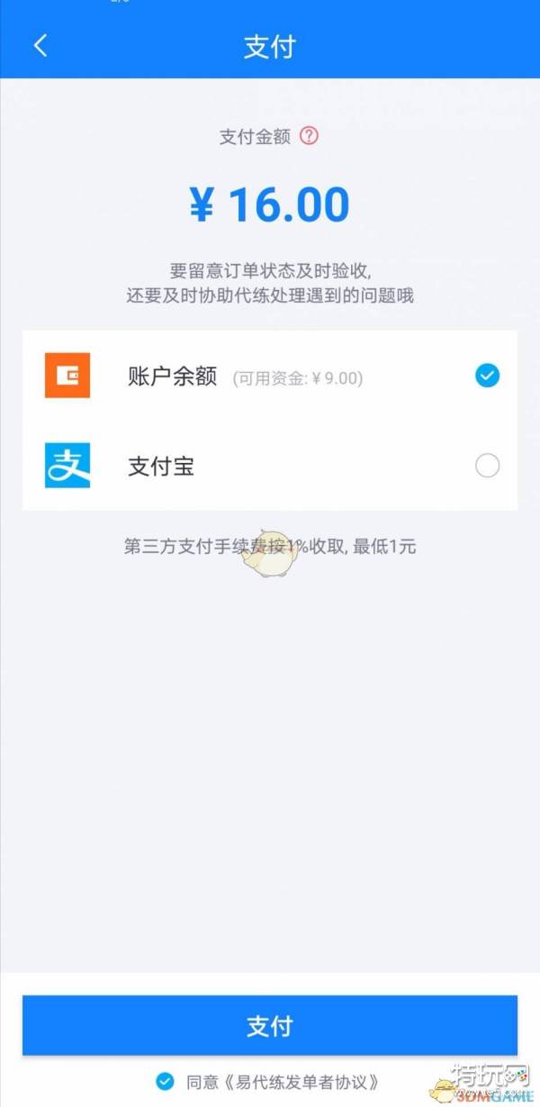 5、支付相应代练金额,点击“支付”即可发布成功。