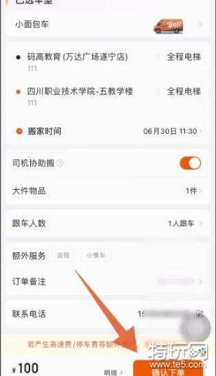 6、最后确认搬家时间以及人数等等其他的信息即可。
