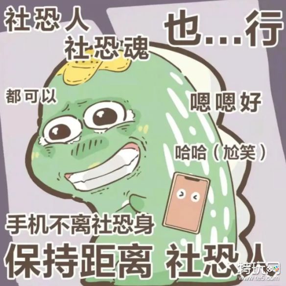 该梗是指内心很恐惧社交,跟别人接触,但为了一些事情不得不逼自己表现得很会社交,很健谈的样子。隐形的社交恐惧症。 在外面社交时,别人感觉不到有社交恐惧的,但是只有自己知道,自己非常不喜欢与人交流。