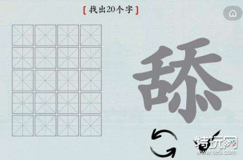 汉字神操作舔找出20个字怎么过?舔字的答案有哪些是不少玩家很困惑的,笔画太多了,字也太多了,那么接下来特玩网小编就给大家带来汉字神操作找出20个字攻略答案。