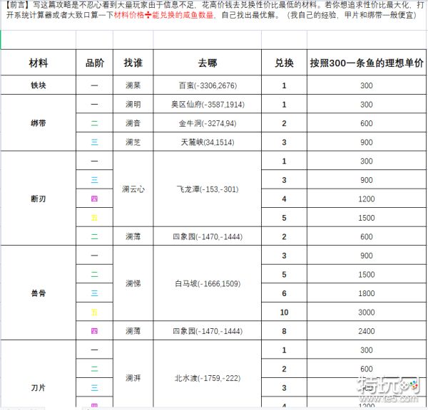 以下是各类材料的兑换地点推荐,希望可以帮助到各位玩家。