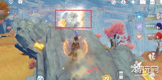 4、通过风场可以快速到达这个大石头处,使用岩元素攻击这块大石头后,这块大石头就会产生共鸣。