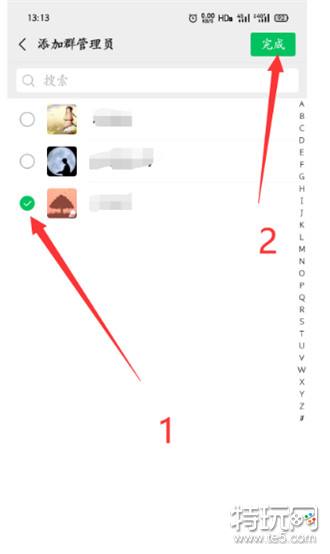 5、勾选需要设置为群管理员的好友,点击【完成】即可