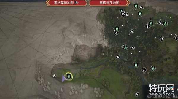 2、藏宝图以及对应的位置如下图所示,具体位置在霍格莫德西侧的河边,可以通过【克罗废墟】传送点前往;
