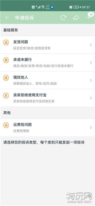 2、进入投诉的订单页面,点击【投诉商家】,选择投诉的类型提交投诉申请即可。