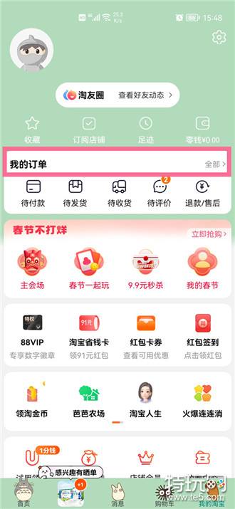 1、打开手机淘宝app,在“我的淘宝”界面点击【我的订单】。