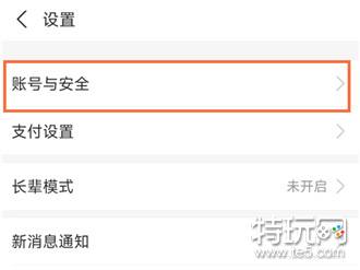 2、在设置中点击账户与安全。