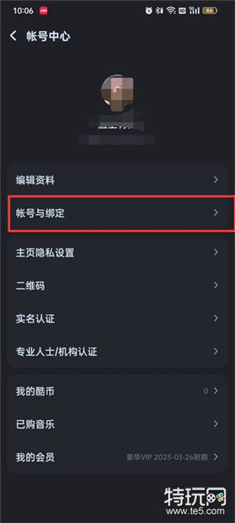 4.点击过后来到账号中心的页面中点击【账号与绑定】;