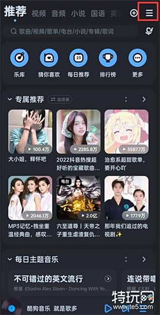 1.首先打开酷狗音乐,在酷狗音乐的主页面中点击右上角的【三横】图标;