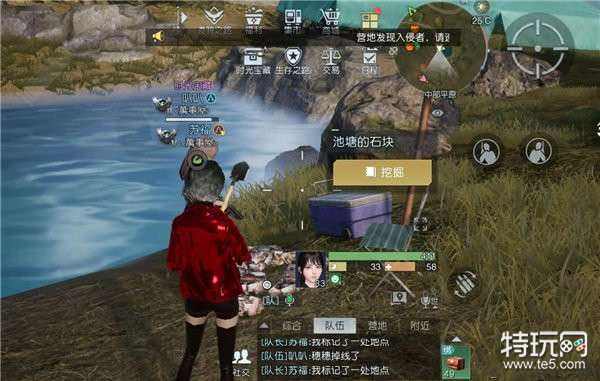 2、在池塘边上找到钓鱼装备,在石块下挖掘出简易强化涂层*5。