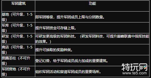 在军团内政界面,可消耗军团资金,提升军团建筑等级,获得特殊效果。(已修建的建筑每日还需消耗维护资金。每天5点刷新,若当日军团维护资金不足,建筑将进入维护状态,失去相应功能,并无法升级。)