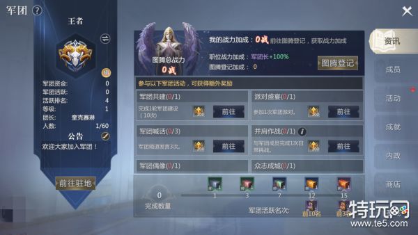 军团干事:包含了议员、指挥官和精锐三个等级的军团职位,可获得较高的图腾战斗力加成。