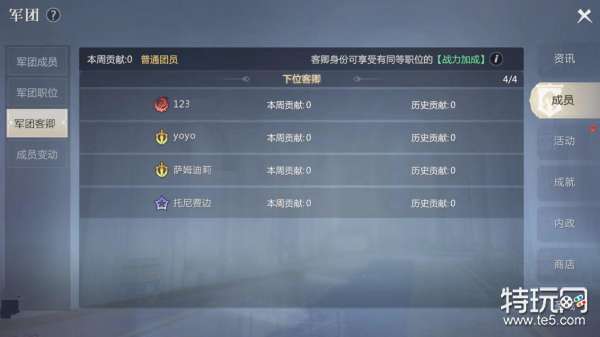 2、若玩家已被任命军团职位,则不参与贡献排名,不可担任客卿。