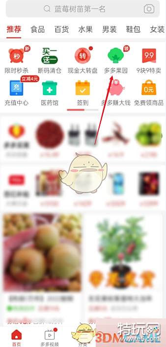 1、首先打开手机上的拼多多APP,点击首页的多多果园。