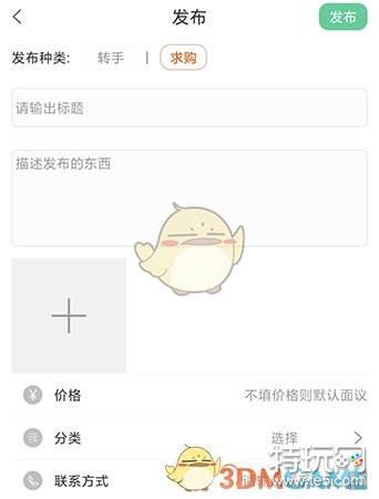 3、切换到求购版块,编辑自己要求购的商品信息,点击发布即可。