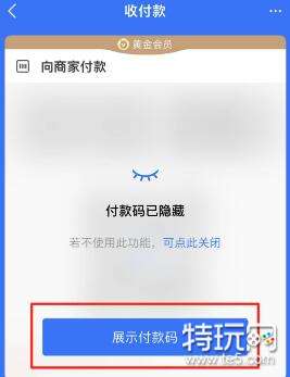 第四步,开通后再次打开付款码可看到付款码已被隐藏,使用时点击“展示付款码”即可。