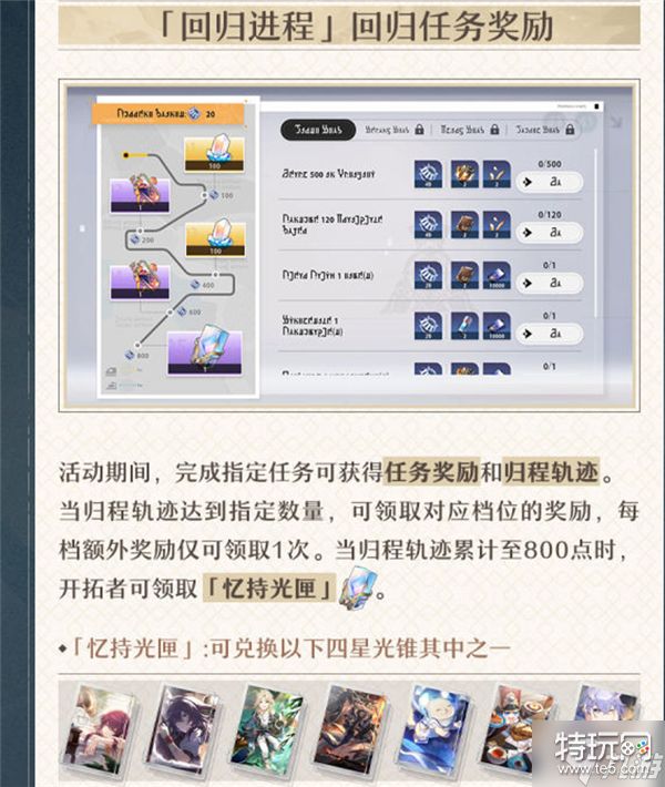 2、忆持光匣是需要玩家完成回归任务获取归程轨迹达到800点才能领取的。
