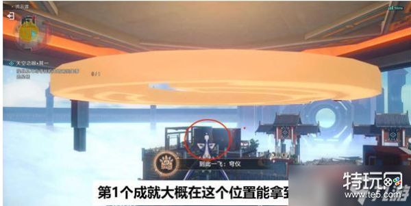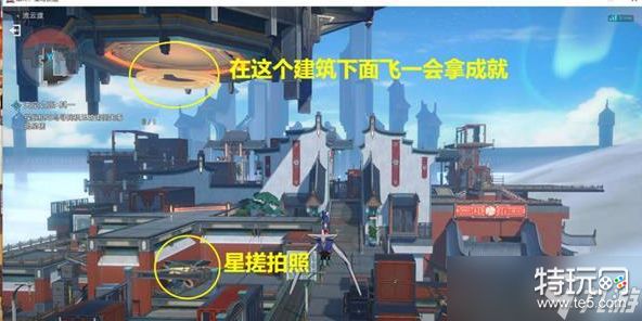 5.我们先去左上建筑下面飞一下,即可获得第1个隐藏成就《到此一飞:穹仪》,该成就具体完成位置,可参考下面第2个图片位置。