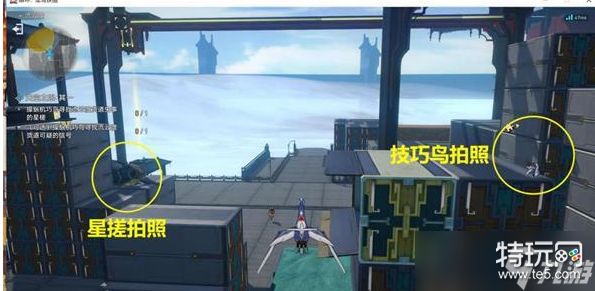 6.后面需要我们操纵机巧鸟寻找积玉坊南侧失事的星搓,去下面星搓位置,完成拍照任务即可,完成第1个区域的星搓拍照任务后,我们会被传送到第2个区域。