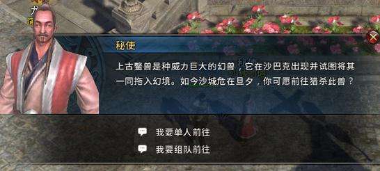 1.活动开放时,即20:00开始,玩家可选择以单人或组队两种方式,通过NPC‘秘使’(比奇615,471;盟重382,550)传送到沙城幻境。