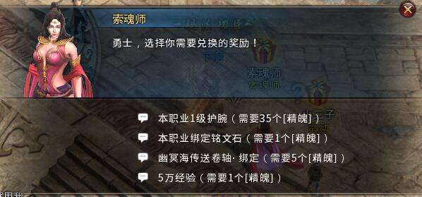 2、玩家每天可至NPC索魂师处使用“精魄”兑换活动奖励。