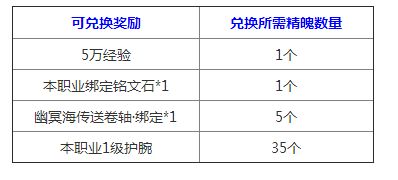 (备注:“护腕”活动期间仅可兑换1次,“幽冥海传送卷轴•绑定”每天只可兑换1个,其他道具每天可兑换累计10次。)