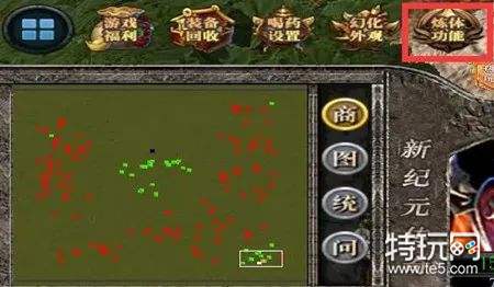 在游戏主界面,点击小地图上方的“练体”按钮,进入“练体”练习。