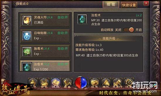 技能按键设置是非常重要的一环,每个职业中都有自动技能,就是点击目标后就会自动攻击,即便即便不放置在快捷键上都会自动释放。那么我们就可以把快捷键的1、2、3号位放置实用的战斗技能,以便在第一时间点到。比如道士在团战中可能会重点承担治疗和加护盾的,那么就可以治愈术和神圣战甲术放在技能快捷键位的最前面。