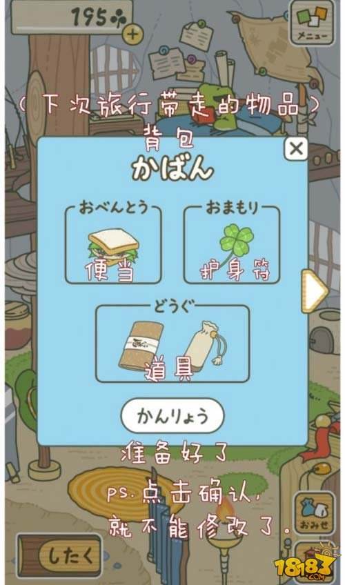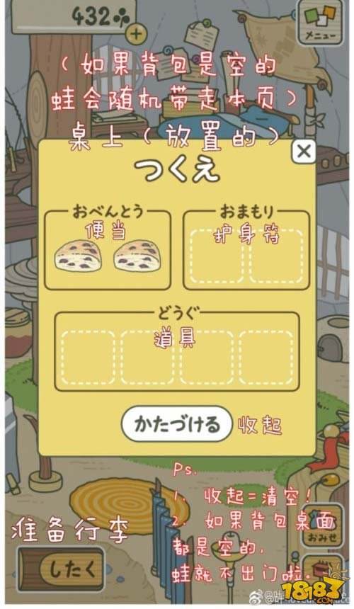 便当和道具基本都可以在商店买到,下面是旅行青蛙商城各物品的翻译: