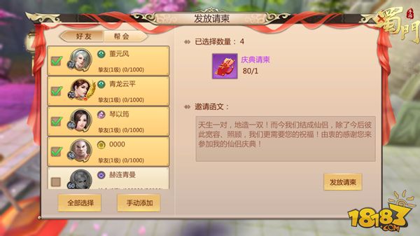 同时为了尽可能满足所有玩家结为仙侣后,举办庆典的愿望,在《蜀门手游》中的仙侣庆典还分为“简约”、“精致”和“豪华”三种档次,玩家们可以根据自身条件自行选择。其次,为了让玩家体验到更加真实更加有代入感的真江湖,庆典需要提前预约举办时段,并且需要发放请柬邀请好友参与。