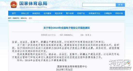 导读: 近日,国家体育总局发布了关于举办2018年全国电子竞技公开赛的通知,为了进一步促进电子竞技在我国的发展,提高我国电子竞技运动员的综合竞技水平,经研究,拟于2018年12月在四川成都举办2018年全国电子竞技公开赛总决赛,项目包含《英雄联盟》《绝地求生》(表演赛)《星际争霸2》《炉石传说》。