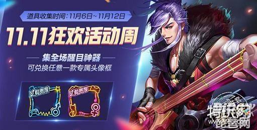 2、双十一四件套:就是之前说的单身贵族头框兑换活动,活动期间登录和参与对局收集全场醒目神器可以兑换头框。活动时间为:11月6日更新后~11月12日。