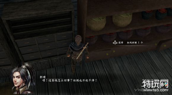 客栈二楼可以拿到松风剑谱,客栈老板和那个剑客身上也有东西,可惜两个人互相盯着没法偷