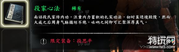 段思平身上有三件物品,两件的偷取概率是0,可以偷到一个段家心法,段思平限定