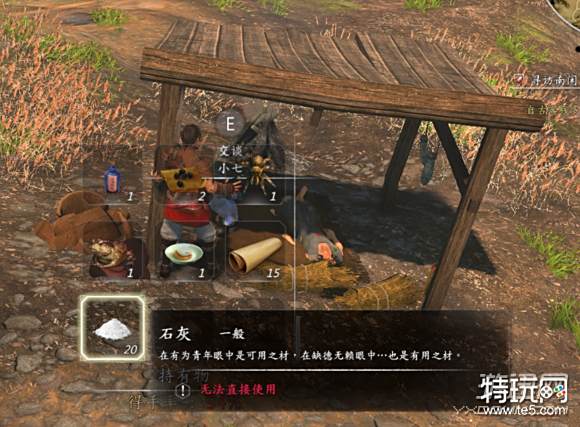 附近凉棚小七身上有很多药和一些材料,还有石灰不知道是不是可以像侠客里的石灰那样战斗用(下三路的武功好像可以用到)