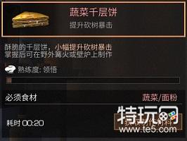 酥脆的千层饼,小幅提升砍树暴击;掌握后可在野外篝火或壁炉上制作