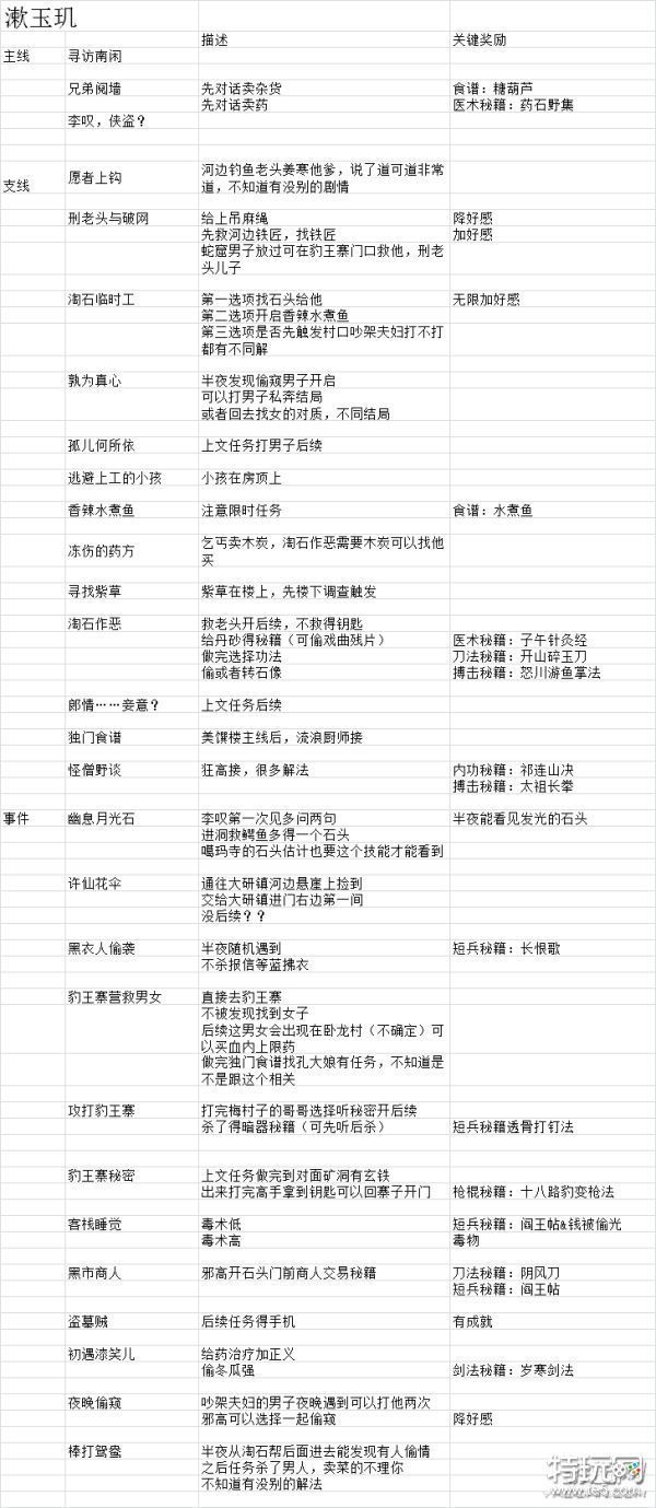 河洛群侠传漱玉玑全主支线任务及突发事件整理汇总