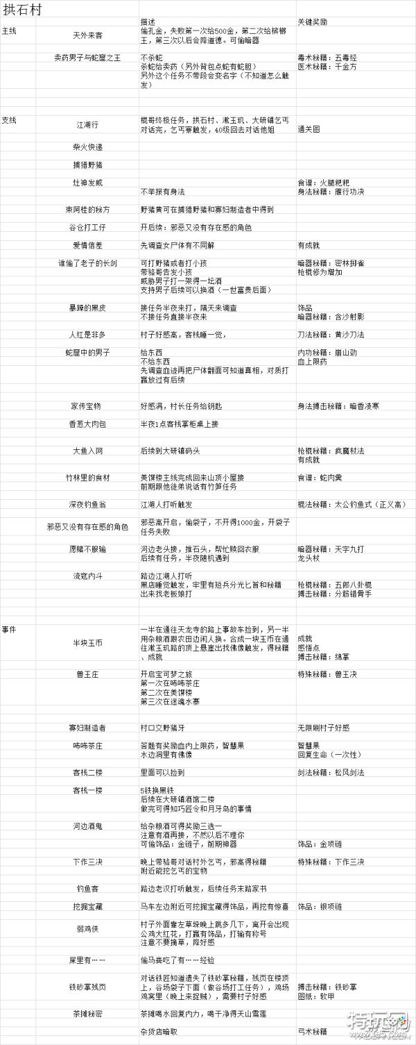 河洛群侠传拱石村全主支线及事件触发方法整理汇总