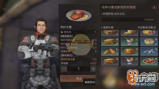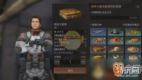 肉馅千层饼,肉扒大餐的好感度提升分别是+620,+620。看来赛科斯塔真的很喜欢吃肉呢
