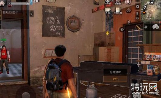 2.在快乐101的食堂门口可以看到一个免费的公共烤炉哦,大家放上燃料之后就可以开始制作了,不过要注意先准备好每一个食材再去尝试制作!家具店就在武器店的旁边,如下图所示的这个位置,大家走过去即可烹饪!