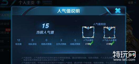 我们希望通过人气系统,去反映玩家在王者荣耀游戏内的受欢迎程度,玩家可以通过积累粉丝、组队游戏、获得相册点赞、获得攻略点赞、获得个人主页点赞等方式提升人气值
