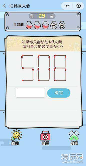 如果你只能移动一根火柴,请问最大的数字是多少?