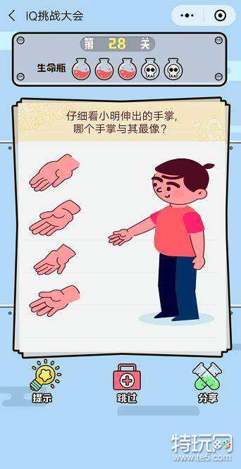 仔细看小明伸出手掌,哪个手掌与其最像?