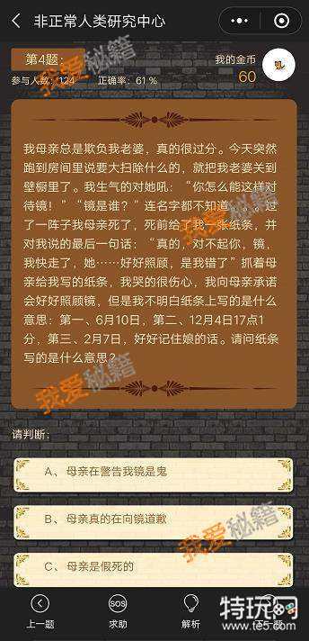 微信真烧脑推理破案第3关就简单一点了,很容易就能分析出来,因为这道题目的选项就只有那几个,想一下就知道正确答案,但是你们知道为什么是这个答案吗?赶紧来看正确解析吧!
