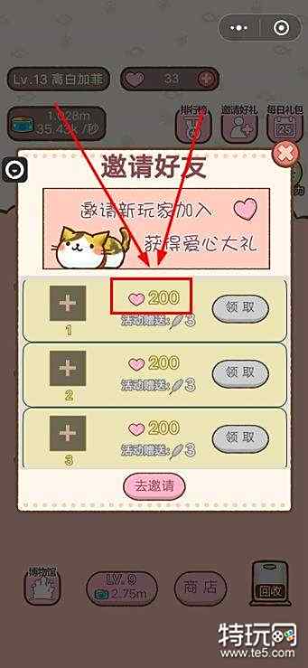 每邀请一位好友进入游戏就能获得200颗爱心奖励!