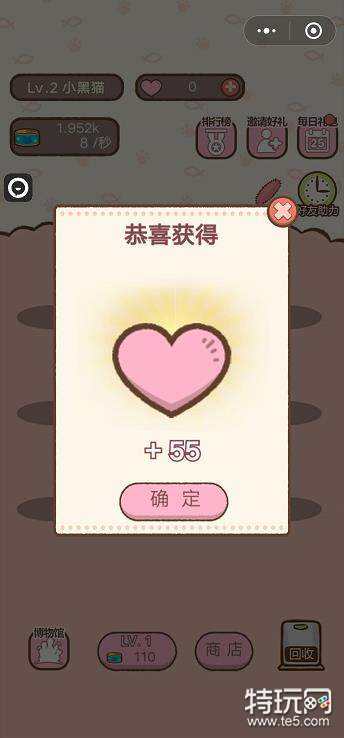 每次合成新的猫咪,玩家们都可以获得不同数量的爱心奖励,合成的猫咪等级越高,你们得到的爱心数量就会越多哦!