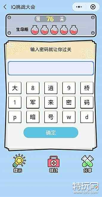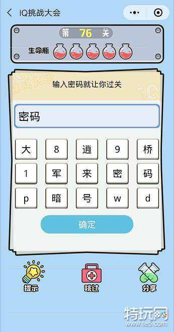 IQ挑战大会第76关图片中有几个白色框框,这几个框框中有一些字,题目的要求是让我们输入密码,但是很多玩家输入了密码之后不正确,这是什么原因呢?我们怎么才能完成这个关卡的通关呢?小编带来了正确操作和解析哦!