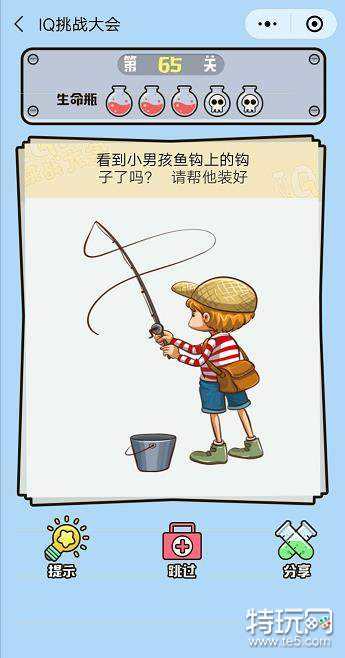 看到小男孩鱼钩上的钩子了吗?请帮他装好