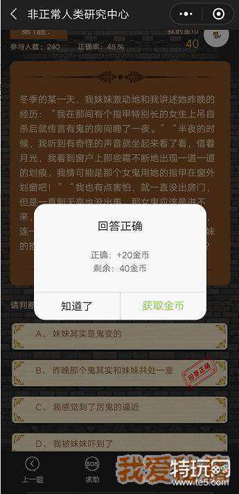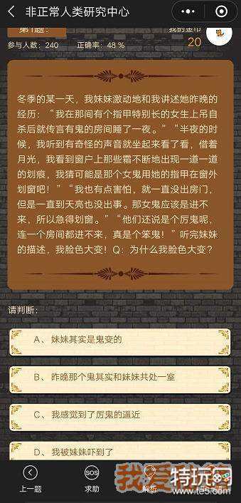 正确答案:B、昨晚那个鬼其实和妹妹共处一室