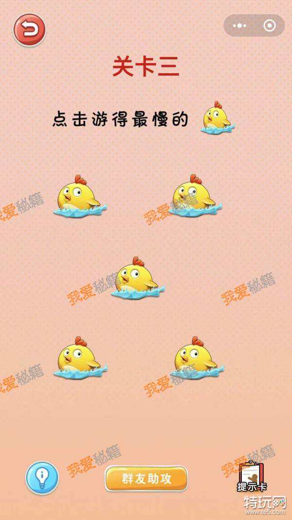 微信疯狂开脑洞第3关中,问大家图中哪只鸭子游的最慢。图上有很多鸭子,其实本关一个个点过去,就可以过关了。不过小编分享出这一关的过关操作, 让大家可以快速过关,一起来看看攻略吧!